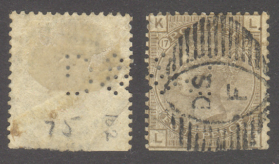 On the right is the 1s green plate 13 with the 1879 type TO2 postmark (22/7/79 to 14/10/80).