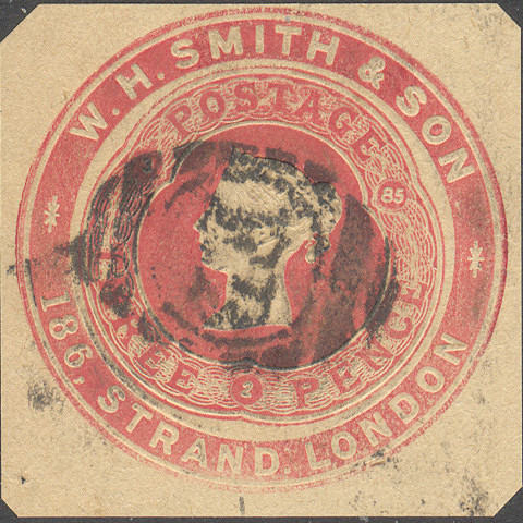 An example on a W. H. Smith & Son wrapper can be seen at StampDomain.com about two thirds of the way down on 1½d yellow and below is a 6d front example.