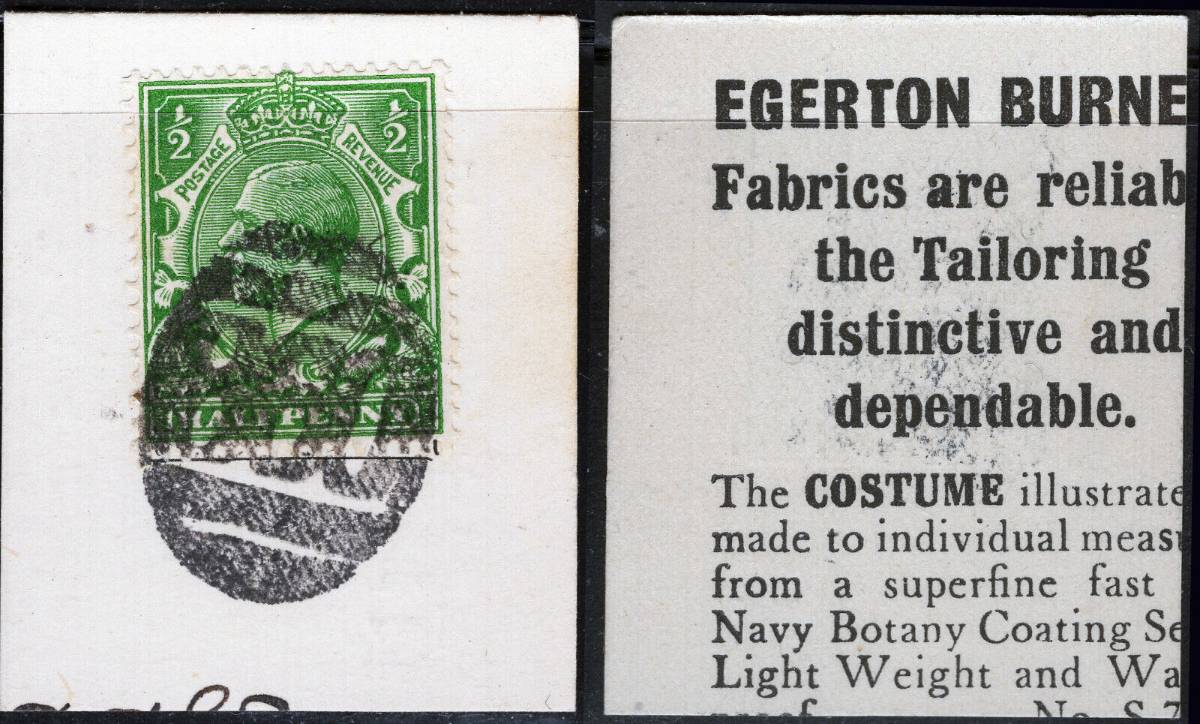 This is part of a card promoting Egerton Burnett's royal navy and black serges. The Victorian style cancel is the 860 of Wellington, Somerset.